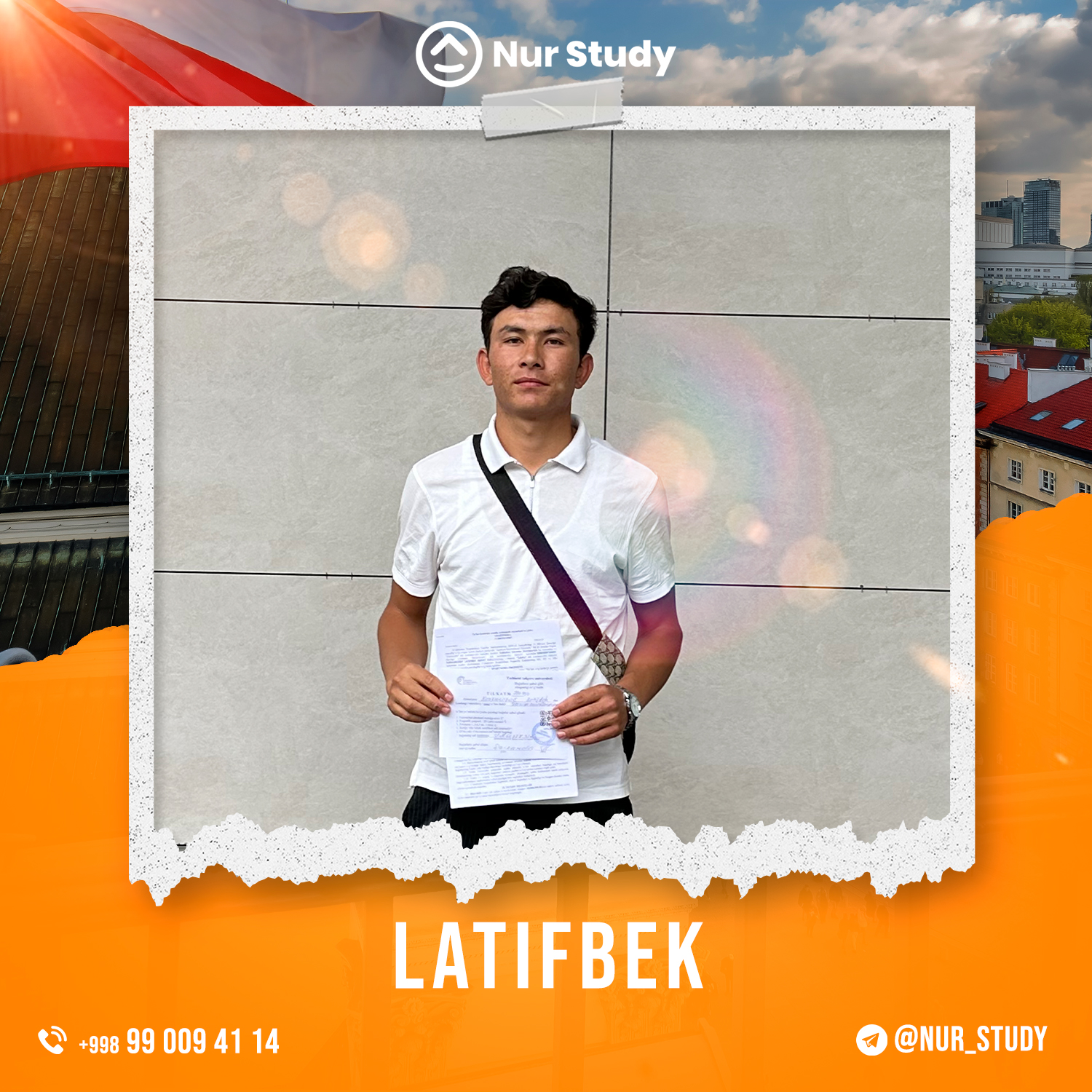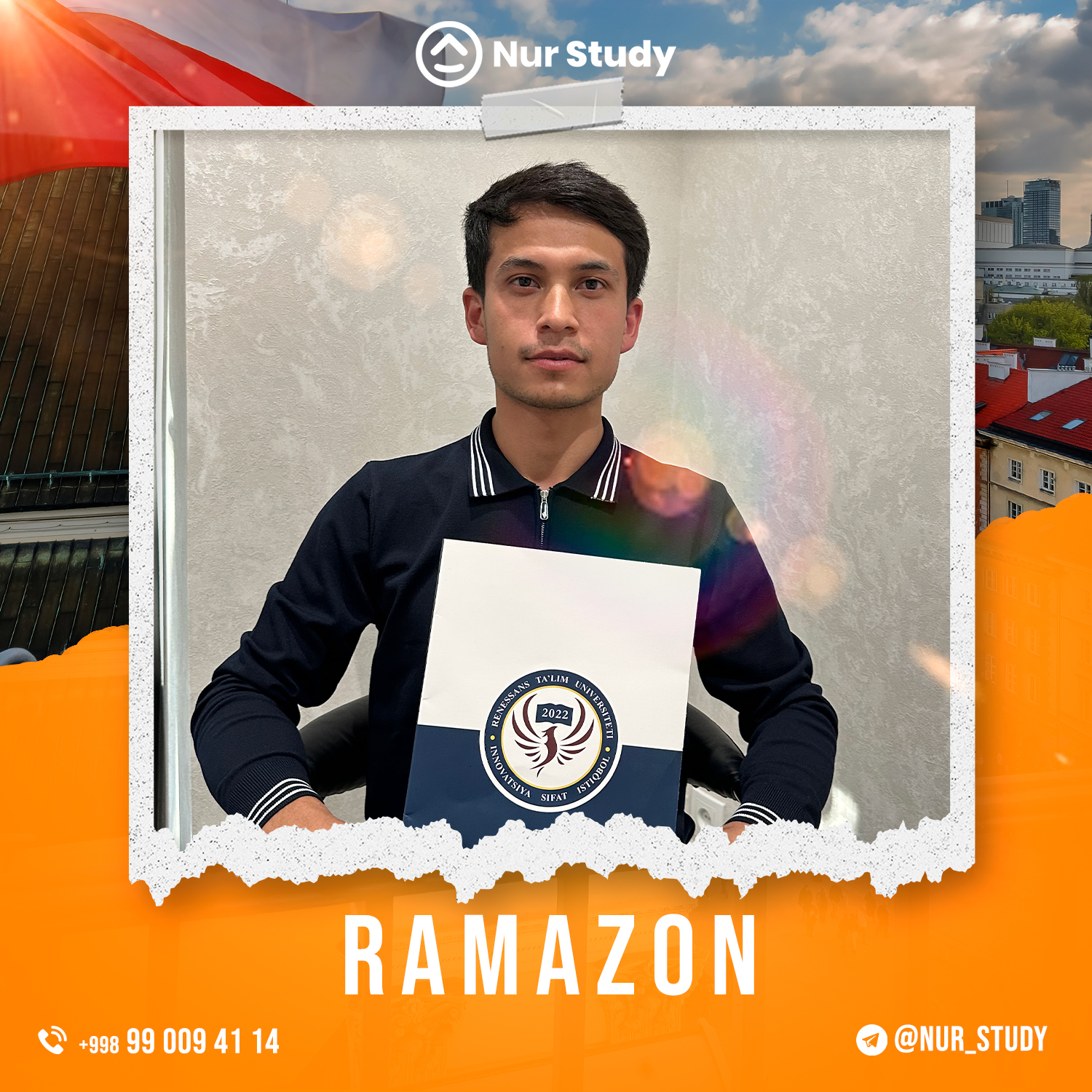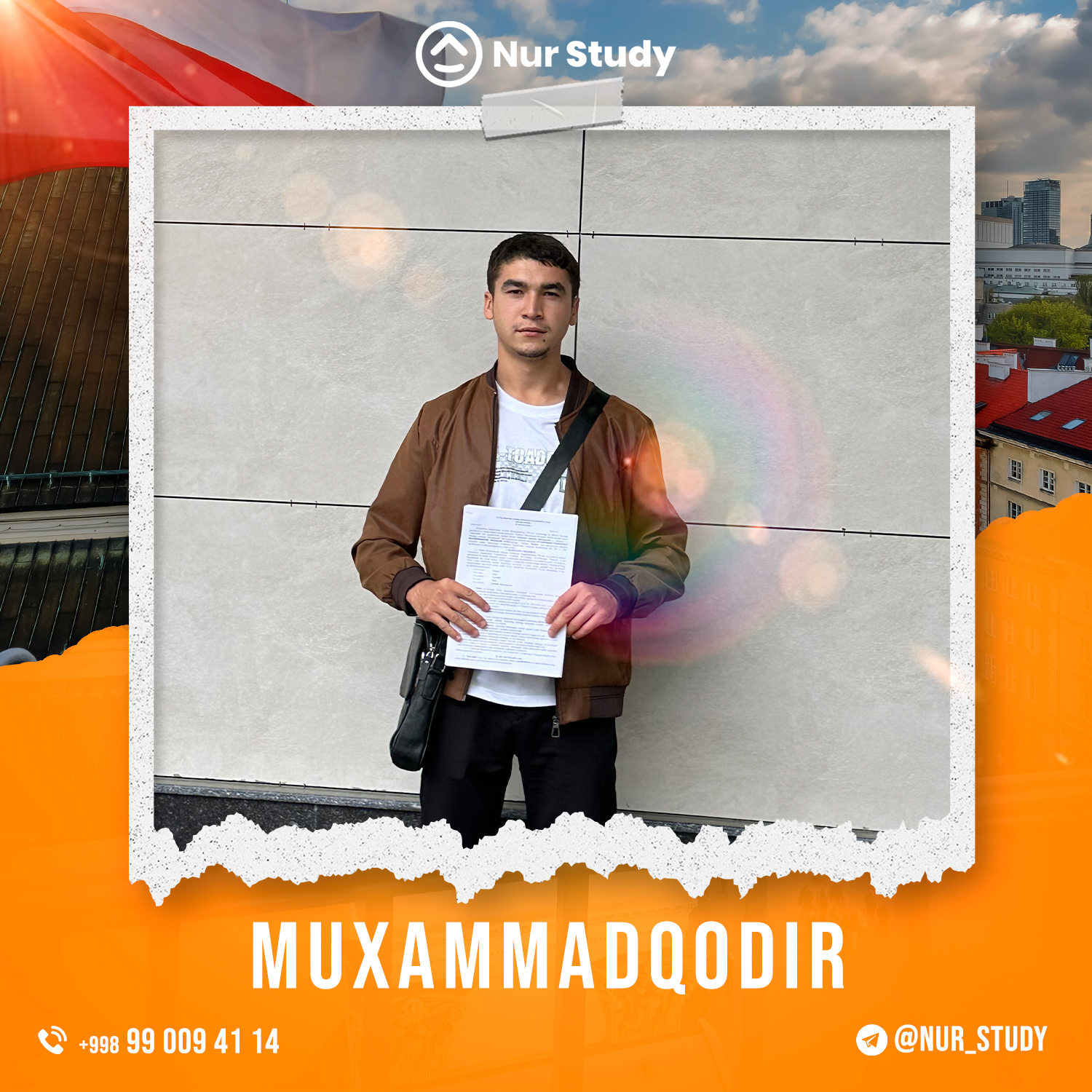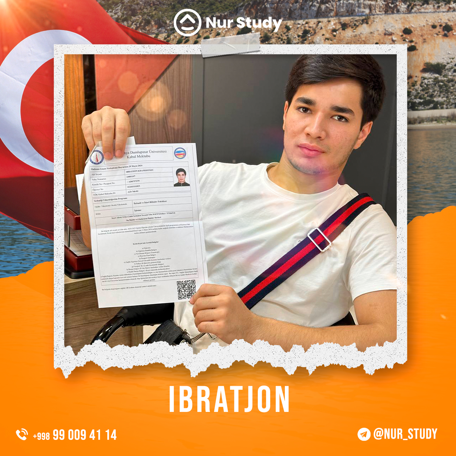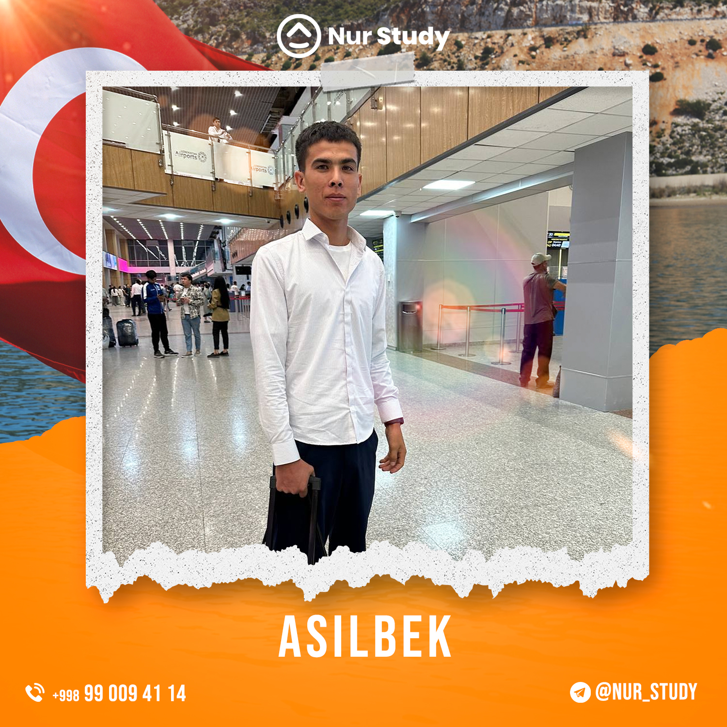 Assalomu aleykum mening ismim Sunnatillo Rajabov. Kanadada o'qishga qiziqishim sabablik nurstudy.uz kompaniyasiga murojat qildim. Kanadaning Ontario shaxrida joylashgan Lakehead universitetiga IELTS sertifikatisiz qabul qilindim va 11 000$ scholarship yutib oldim shuningdek Kanadaga 4 yillik ishlash va o'qish vizasini qo'lga kiritdim. Menga yaqindan yordam bergan nurstudy.uz jamoasiga kattakon raxmat.